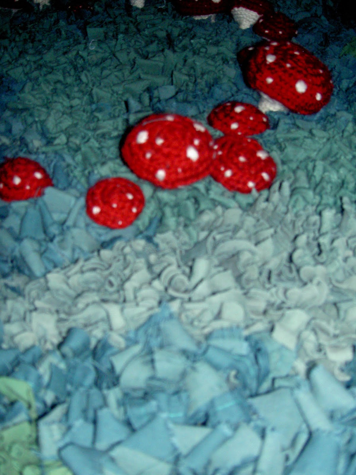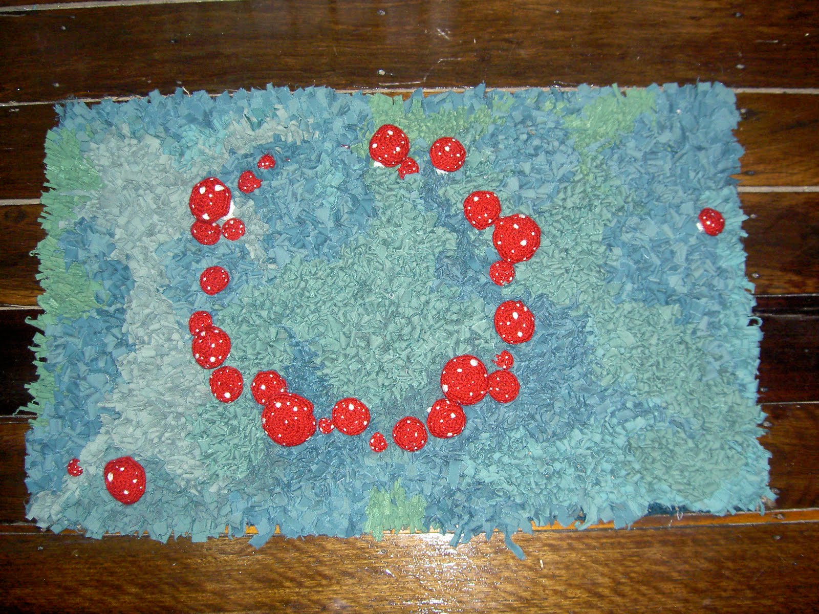 So, it took approximately one month, and I have pretty much finished Fairy-ring 2. I say ‘pretty much’ as there is about another hour of polishing (clipping the loops to make the pile) needed, and I have yet to sew a wee label on the back. I added about another single and double sheets’ worth of material to complete it, and fortunately I still have enough left over to begin Fairy-ring 3; Emergence (working title). Stay tuned for those developments. I can promise armatures, more crochet and an interesting tangent.