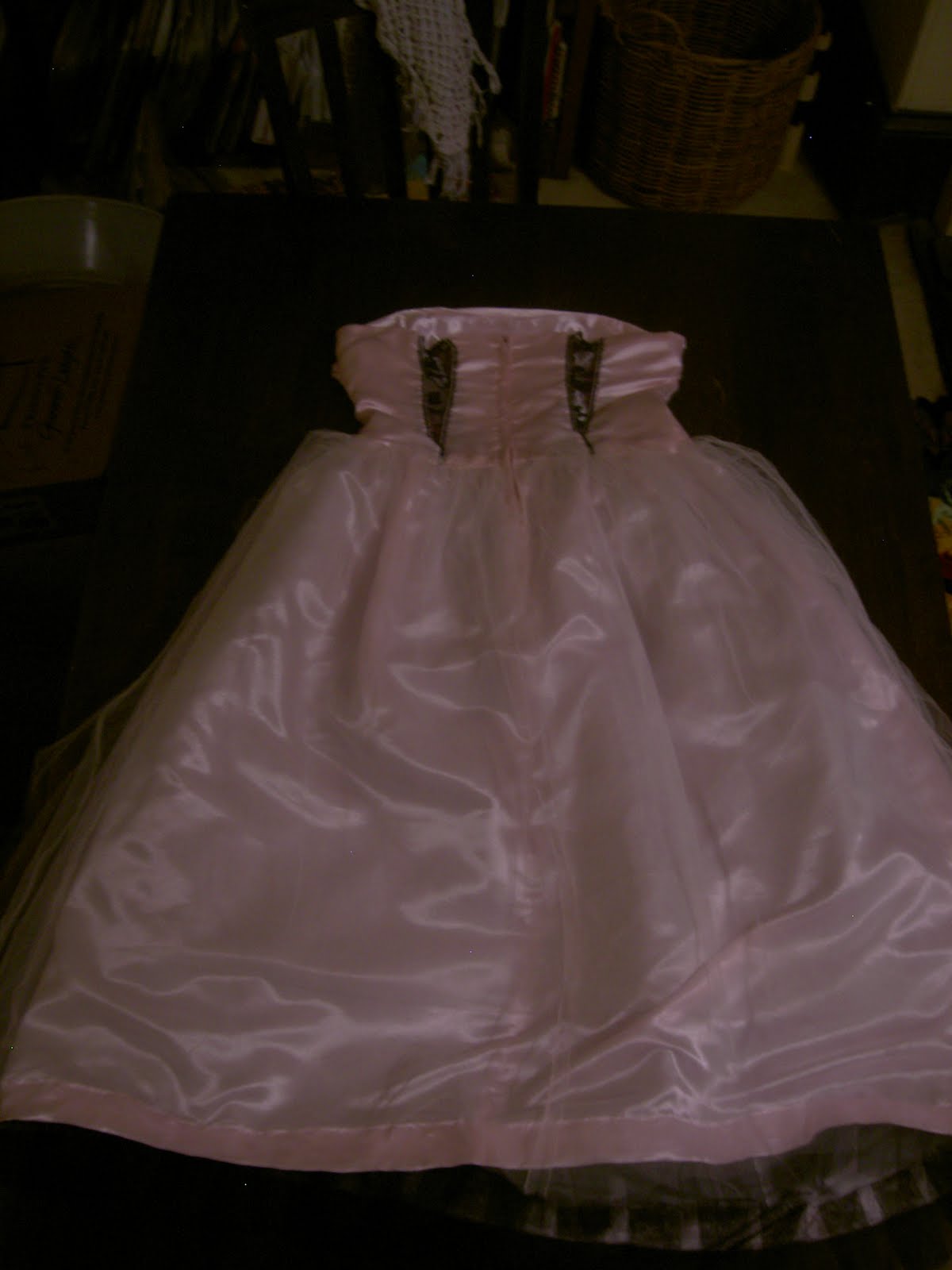 So, then it was time to alter the bottom. Using lengths of tulle approximately 15cm wide by 1.5m long I made concertina folds 5cm long to add more volume to the bottom of the dress and sewed those firmly to the hemline.