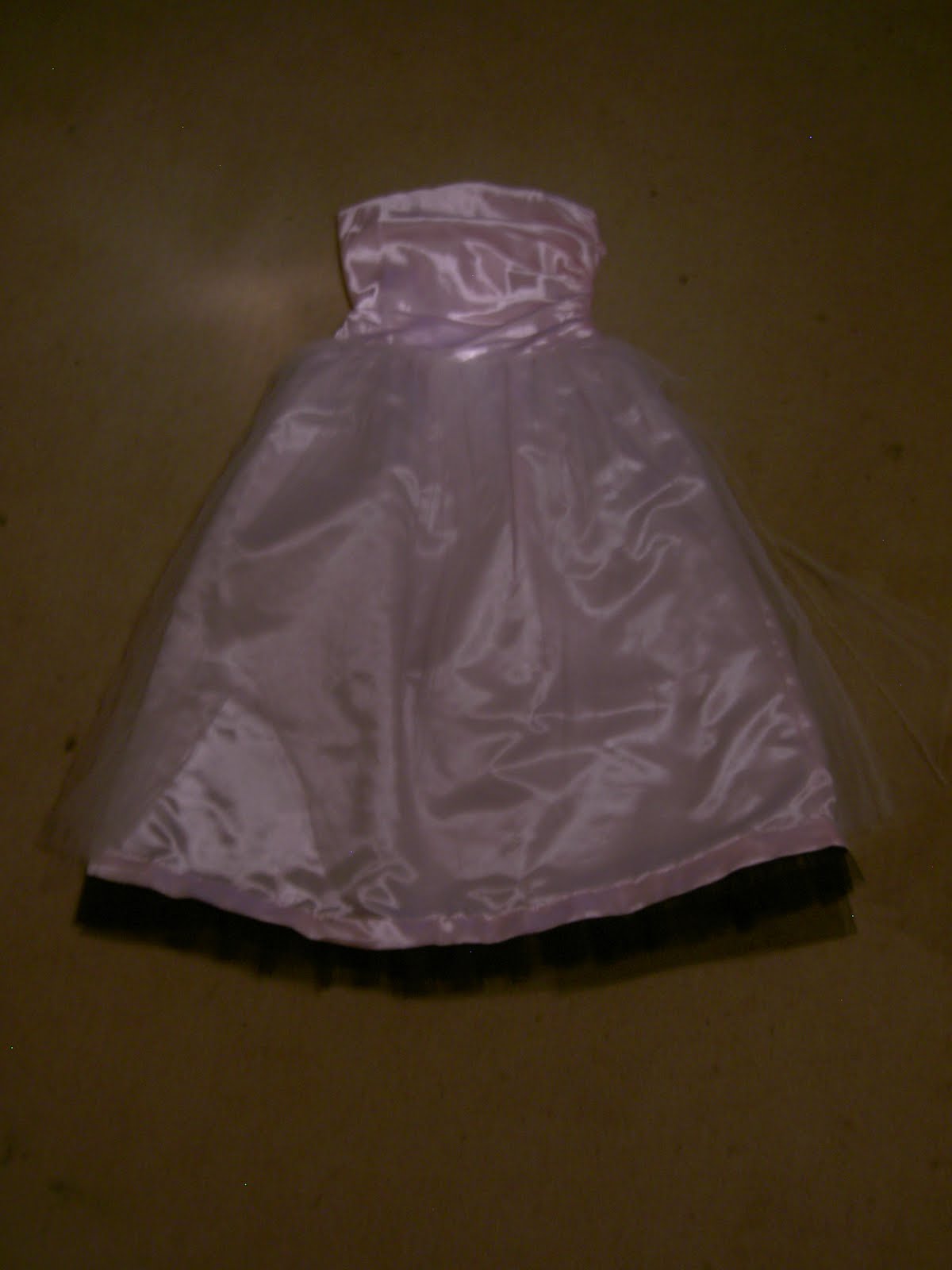 So, then it was time to unpick the seams on either side of the back zipper, and attach two lace inserts. There was a little bit of lace left over from some other thing, so I measured two isosceles triangles and sewed them into the space where the seams were. It’s hard to see, but I added approximately 10cm to the bust by doing that. I hand-sew everything, and looking closely you can see a pattern of Xs along the lace and down to the start of the tulle of the skirt. I did that because I thought running stitch would be boring, and I didn’t have any thread in Insipid Pink.