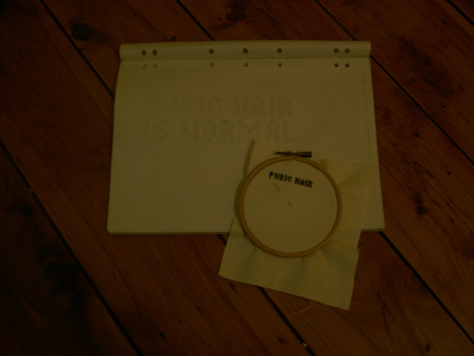 | Can you read this? So far, it says ‘Pubic hair’ |