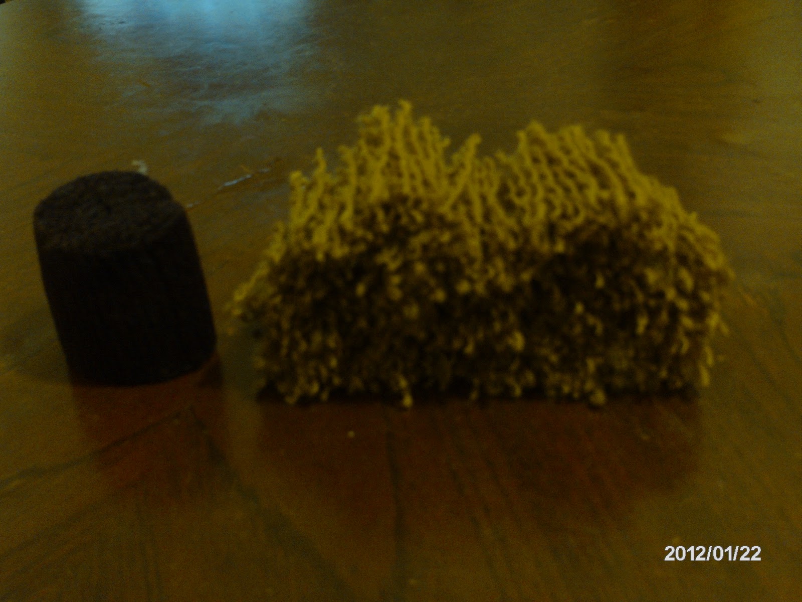 You may recognise this cylindrical shape as a measure of hookrug wool. I do not want to make a hookrug in this colour, but I can hopefully find a use for it, as a length of rough, ugly felt (it’s still a bit of a secret the as to the why).