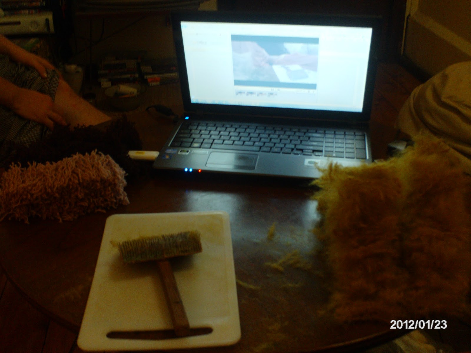 Then, using a chopping board and a barbaric steel-bristled wide brush, I turn the pulled apart ply into: