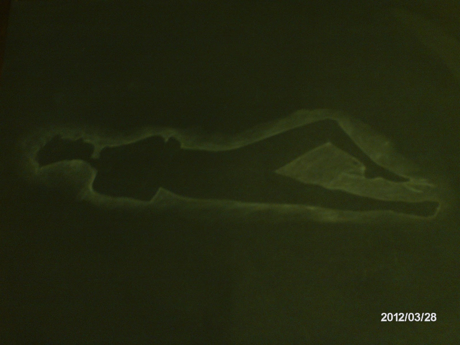 | Appropriation of an advertising image, one of those creepy ones where women selling shoes/perfume are portrayed as murder victims or something equally dark. |