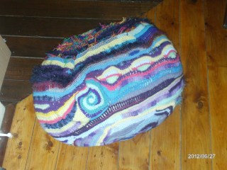 A tip is to go mad with colour, but not too mad. If you’re gonna contrast, contrast, and if you want to compliment, compliment but don’t compliment AND contrast colours nimbly-bimbly throughout the work. Hold the next planned wool against the completed piece. Does the colour work? Does it not work in an interesting way? How much should be used before it overpowers all the other colours?