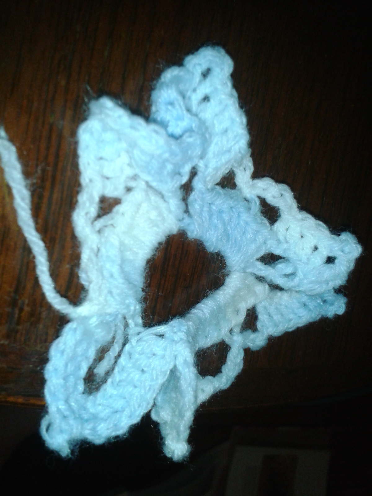 Some things have not gone according to plan. This was supposed to be a daffodil, and I think I was using British crochet when I should have been using American….?