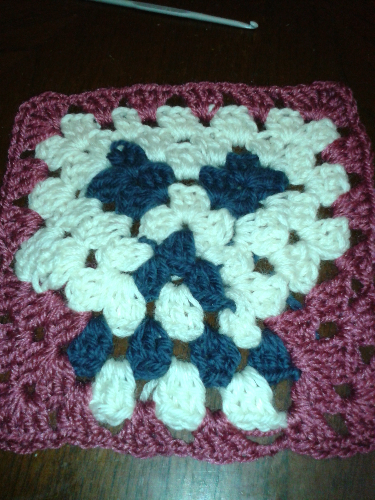For bonus credit, I knocked up about a half-a-dozen afghan squares using a recipe from the interesting and clever Ursula Glitch. She writes about crocheting, and creates patterns which she kindly shares, and some other stuff which must be driving the mister crazy by now. “Ursula Glitch said” is becoming my unofficial slogan of February. She wrote a post on 5 ways to maximise your creativity which was a list of ideas that I already knew, but needed to remember. So, thank her for this cool bastard, and you can create your own with her recipe here.
