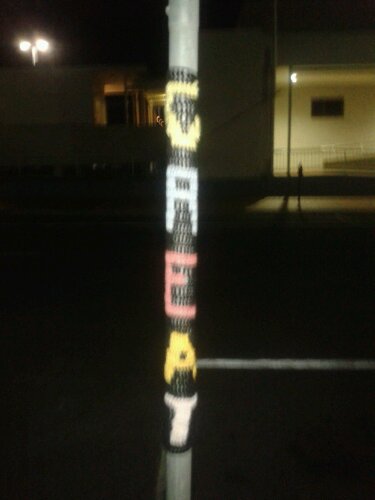 I put these ones up over the weekend. I had some friends come into town and we went for a walk to get ice-cream. I took some terrible photos for posterity. You may recognise some of the crochets wool pieces from this and this previous post.
