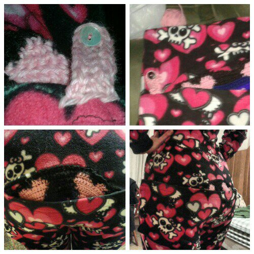 5. Attach two crochet pieces (with buttonholes) on the flappy part of the bum flap.