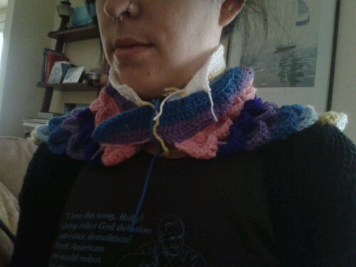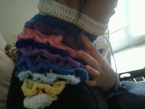 What I have I been making of late? A rainbow crocodile stitch collar with crochet. Also known as alligator stitch or pineapple stitch, I love this wool-eating, quick stitch. It looks complicated, but once you get the hang of it, crocodile stitch is pretty simple.
