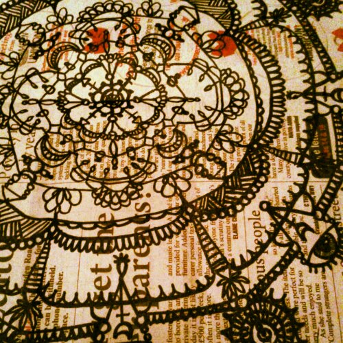 Since I have no more wool, and am finding cheap, colourful and acrylic wools difficult to source in London op shops (charity stores), I have been doing some rough drawings. Partly to keep my eye in regarding fine hand skills, partly because having still hands makes me feel very queer. Here is a few mandala drawings, and a few other subjects that took my fancy.