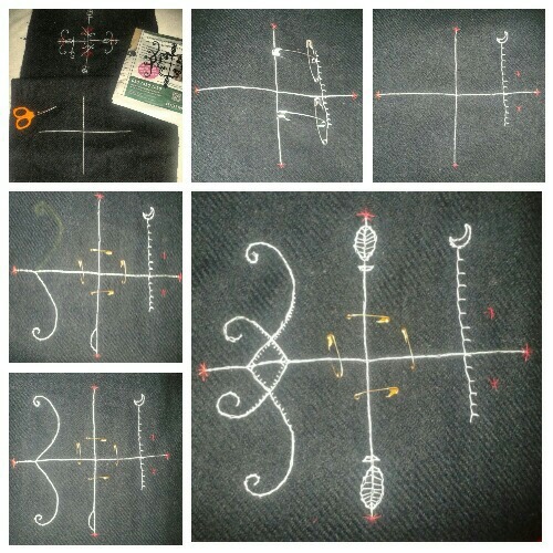 Embroidery is hard without an embroidery hoop. But, after some initial clumsiness, I get into the swing of things and create some interesting geometric shapes and patterns.