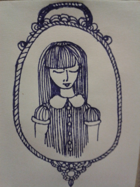 ink drawing pinstripe dress ornate frame