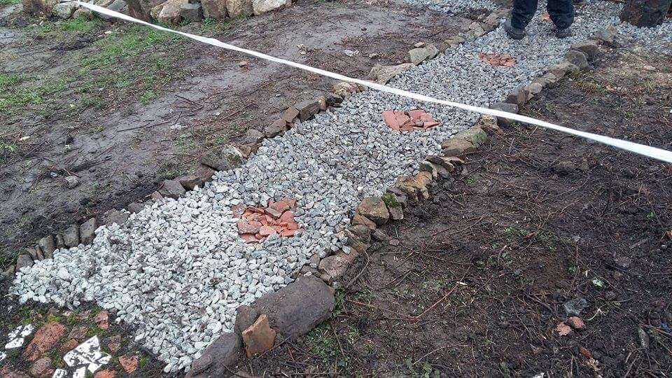 Lined the way with some nice square-cut rocks reclaimed from a wall we demolished.