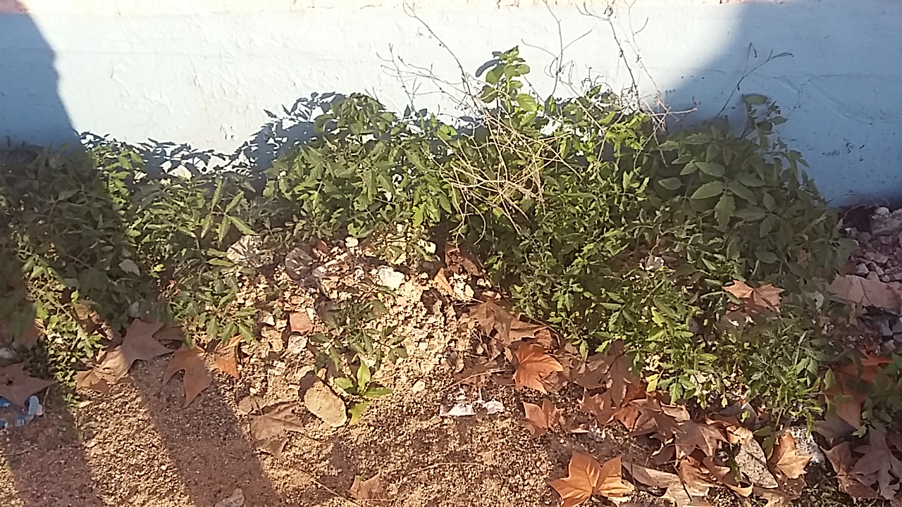 Pictured: tomato, silverbeet, spinach and rocket growing wild in this sandy parking lot.