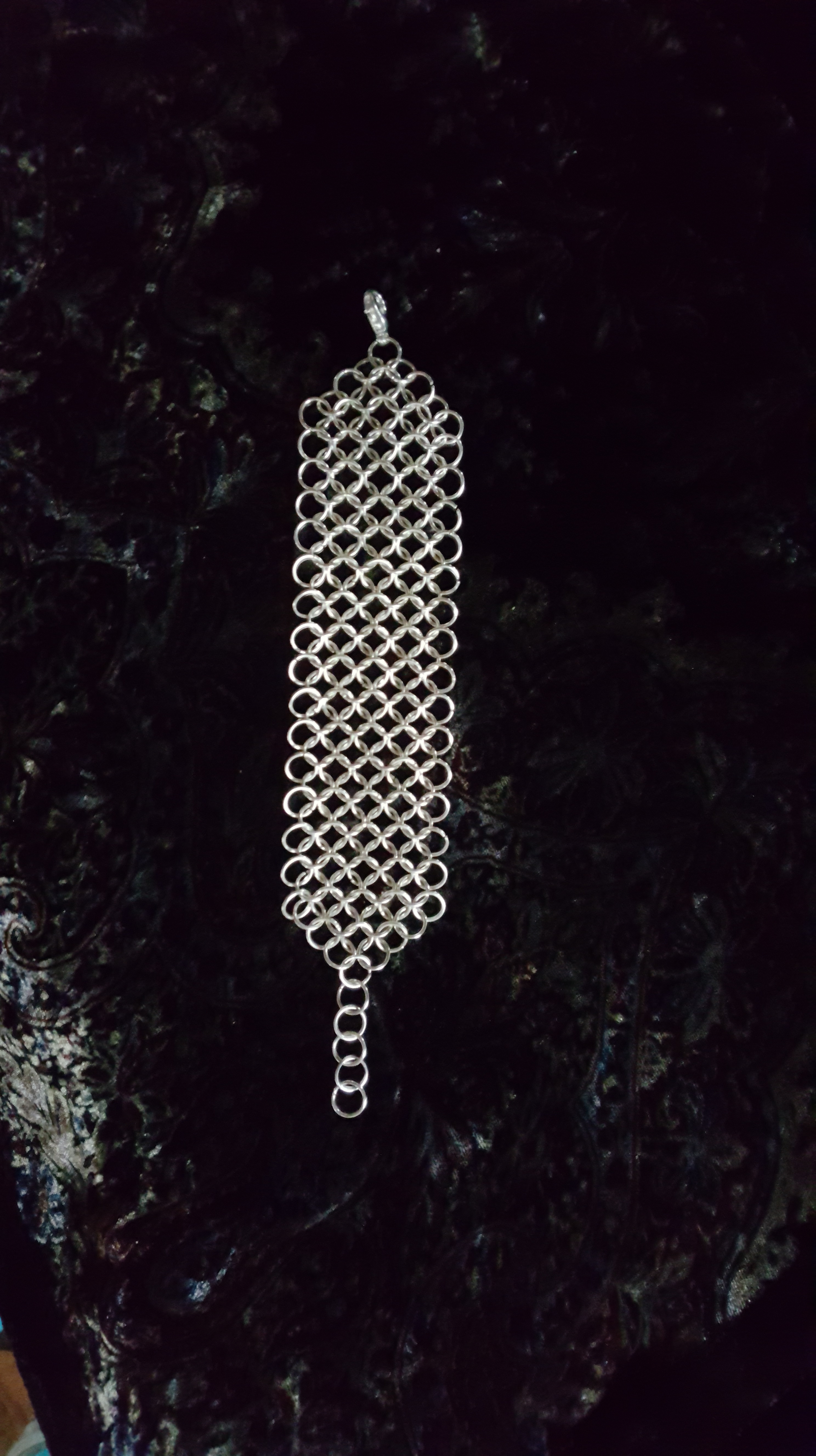 We started out with a very simple bracelet. Steelmaiden kindly supplied me further linkage to blow the sides of it out, so I turned it into more of a gauntlet.