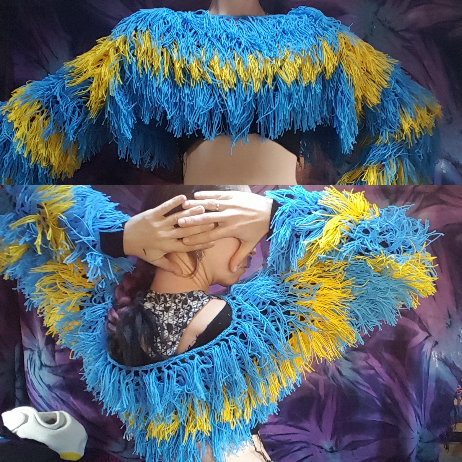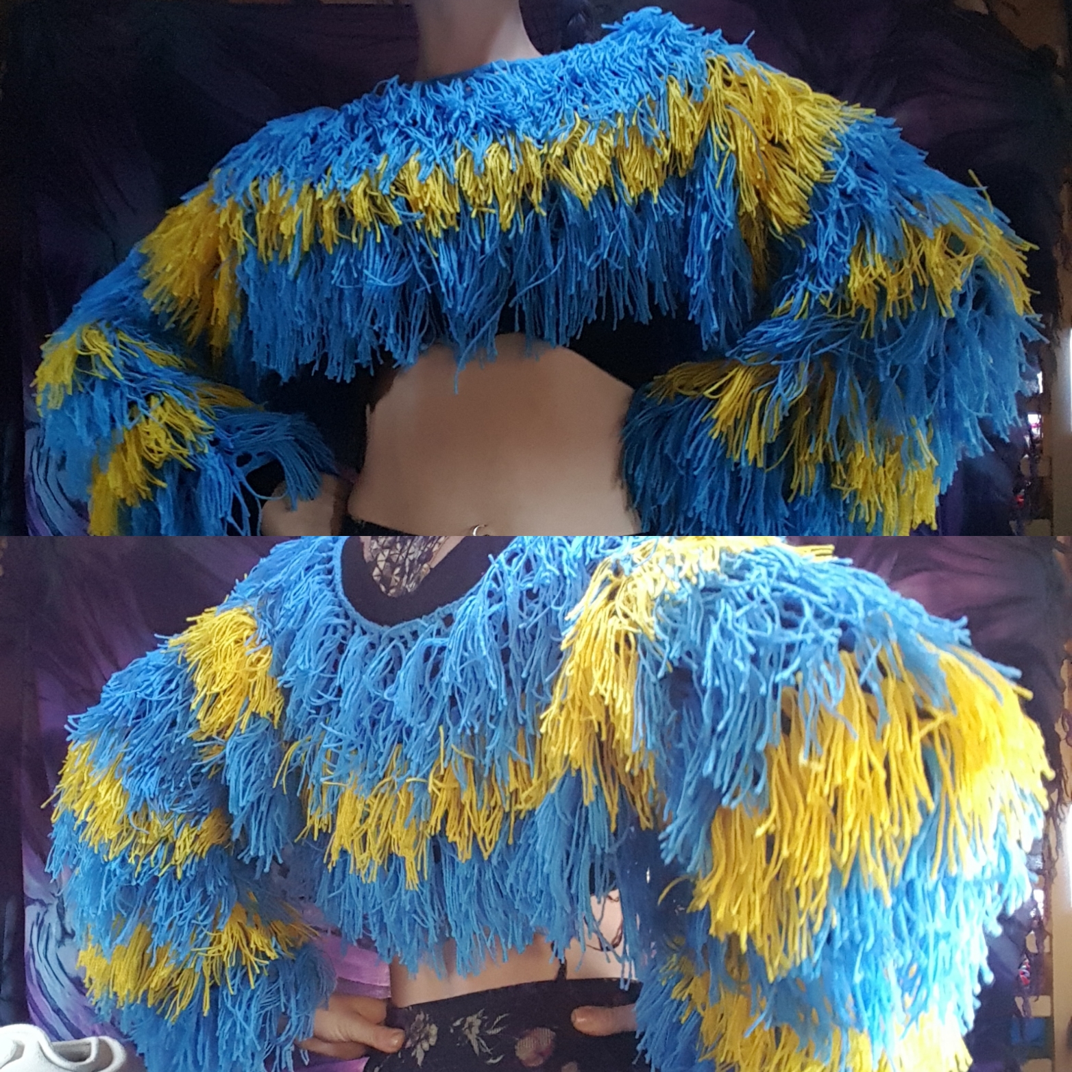 👘 The sister top, a shaggy yellow and blue long sleeved bolero 👘