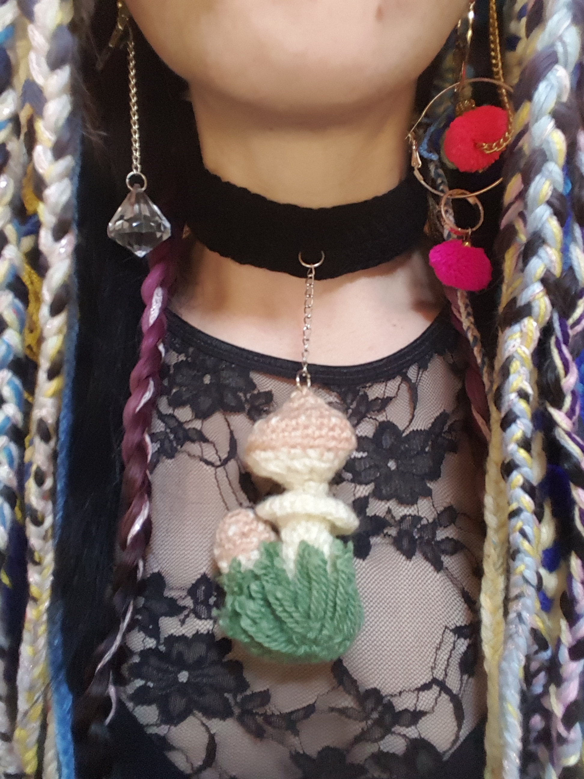 These mushroom beads I had made last winter, and originally I had planned to turning them into dangly earrings. Unfortunately, I had made the amigurumi forms too large for ears!