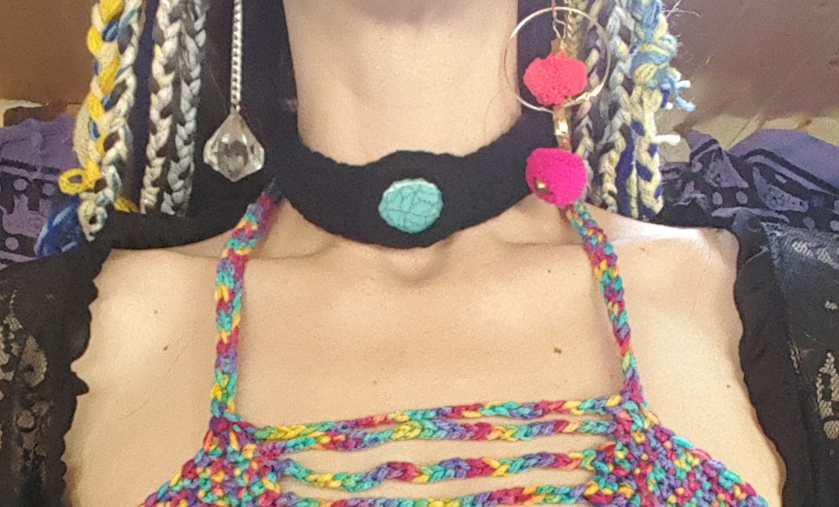 To make up for the sudden lack of chokers, I developed a pattern for a simple black choker strap with a simple tie and made a couple up over the afternoon.