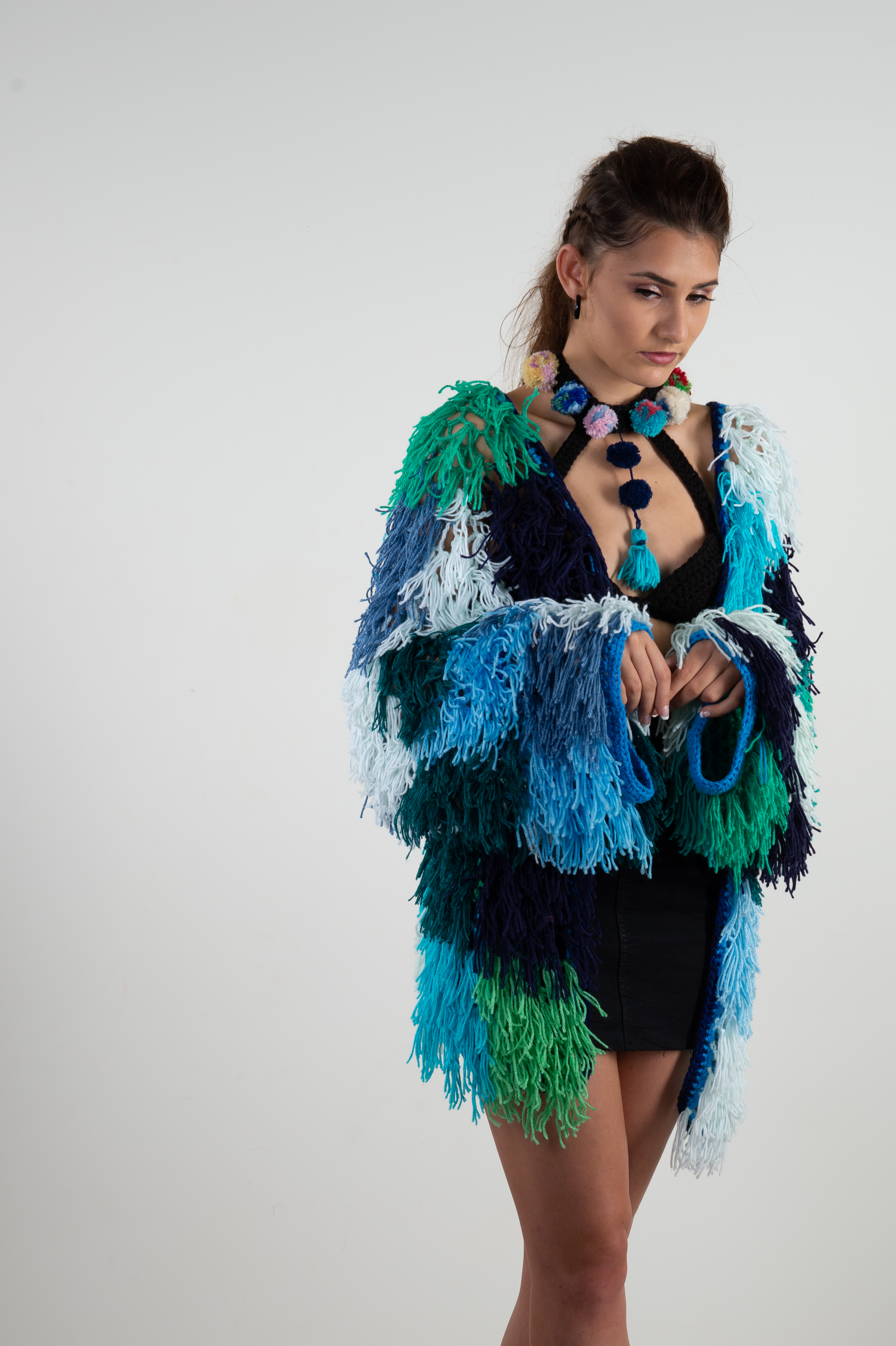 I wanted to make something a little bit oceanic, a little bit beached mermaid, something a little bit seaweedy…calming colours for a cosy jacket to wear in the psyforest this summer season!
