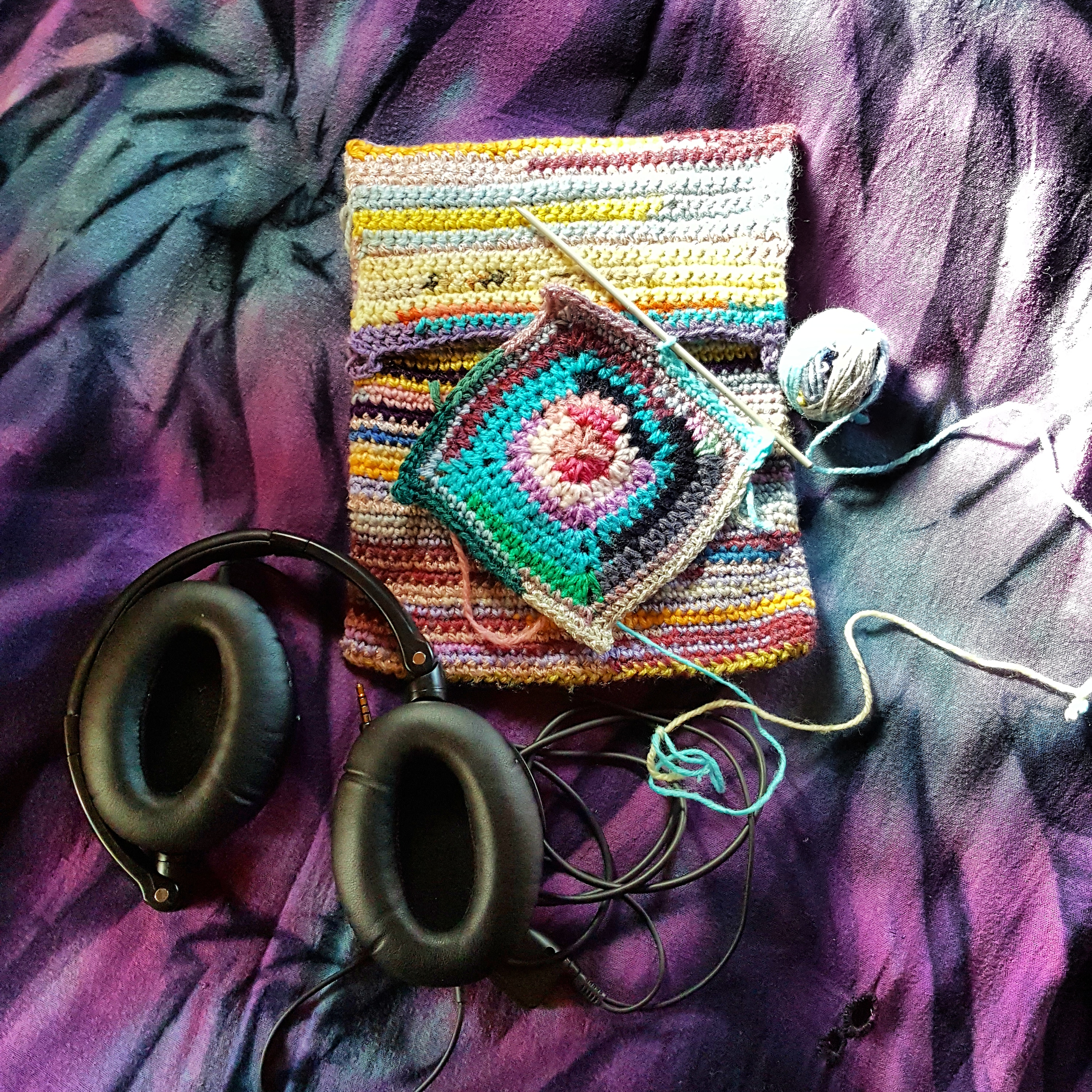 The project above is a bag to hold my headphones. I have also made a little pocket to be sewn to the front to hold my aeroplane plug attachment and charger.